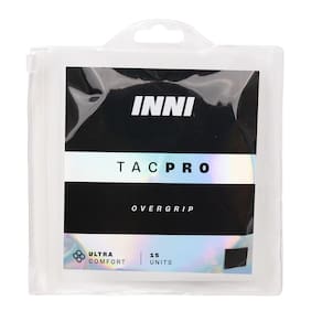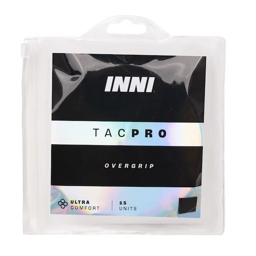 Overgrip INNI TacPro Preto - 15 UnidadesO Overgrip INNI TacPro é a melhor opção para melhorar seu desempenho nas quadras, pois proporciona máxima aderência à mão e grande controle da raquete. Possui tecnologia que proporciona conforto e aderência extra com excelente durabilidade. - Características: Superfície confortável, aderente e suave;- Material: 50% feltro e 50% borracha macia;- Tamanho: 0,65 mm de espessura, 1100mm de comprimento e 26mm de largura;- Peso: 5g / unidade;- Cor: Preto;- Quantidade: Pack com 15 unidades;- Origem: Importado. Marca: Não Informado