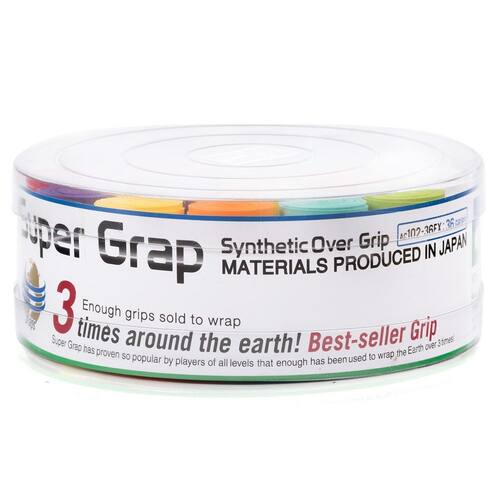 Overgrip Yonex Super Grap Colorido Com 36 Unidades um dos nossos grips mais vendidos, o Super Grap, revolucionou as expectativas de desempenho do overgrip ao combinar ótima aderência, absorção e durabilidade sólida. Ele melhora a jogabilidade da sua raquete e absorve choques e transpiração, proporcionando excelente controle e sensação. O Super Grap se encaixa em raquetes de corpo longo e padrão.