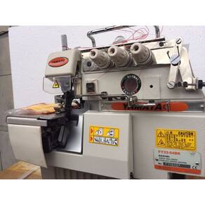 Máquina overloque industrial com BK, uma agulha e dois looper, velocidade de 6500 ponto por minuto com embutidor de correntinha, deixando o inicio da costura com reforço e qualidade, evitando que a costura se abra após a lavagem.