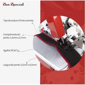 Máquina Costura Overlock Portátil Semi Industrial 01 Agulha 03 Fios 150w 1.350ppm SSH10-6D - Sun Special