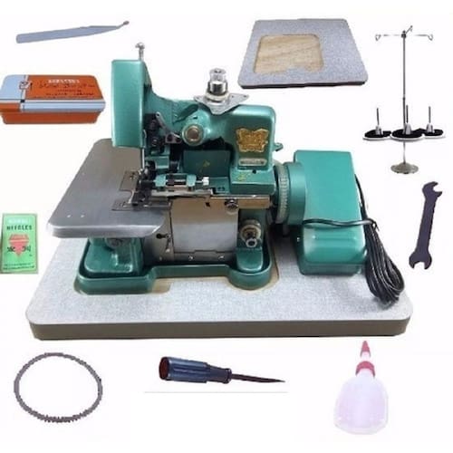 Costura e corta ao mesmo tempo, e também prega elástico. Muito simples e de fácil manejo, já vai com os fios passados e revisada, facilitando o uso inicial. O óleo é colocado manualmente.