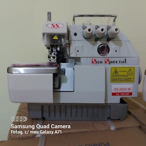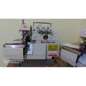 As máquinas de costura industriais overloque 3-fios Sun Special são ideais para os prestadores de serviços ou confeccionistas que queiram conciliar praticidade, produtividade, qualidade e durabilidade.Próprias para confecção em tecidos planos e de malhas, nas etapas de preparação ou acabamento das peças. OS Diferenciais: - Design moderno; - Lubrificação automática com filtro de óleo; - Protetor de agulha móvel para prevenir falhas de ponto e reduzir desgaste de agulha; - Botão para regulagem simples do comprimento do ponto; - Ajuste diferencial simples por alavanca com parafuso de ajuste fino; - Abertura simples da chapa de tecido para passagem de linha e limpeza; - Resfriador de agulha e de sua linha para operação em alta velocidade.