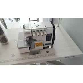 Overloque com 2 agulhas e 4 fios, bitola média leve e motor embutido direct drive. Equipada com mecanismo automático de posicionamento de agulha superior e inferior que permite aumento da produtividade em cerca de 15% por dispensar o manuseio do volante pelo operador.