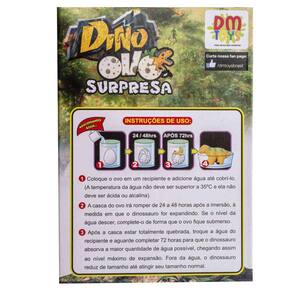 Após a casca estar totalmente quebrada, troque a água do recipiente e aguarde completar 72 horas para que o dinossauro absorva a maior quantidade de água possível, chegando assim ao nível máximo de expansão. Fora da água, o dinossauro reduz de tamanho até atingir seu tamanho normal.