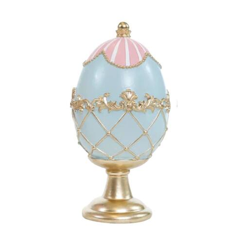 ATENCAOAs cores dos produtos podem sofrer variacoes em funcao das caracteristicas do monitor OBSERVACAO IMPORTANTEOs produtos podem sofrer alteracoes no design pelo fabricanteTodos os nossos produtos sao testados e filmados antes do envioConteudo da embalagem 01 unidade na embalagem OVO DO COELHO DE PASCOA MY LORD FABERGE AZUL 01 UNIDADE 1099906 O Ovo do Coelho de Pascoa My Lord Faberge Azul e uma peca elegante e sofisticada inspirada no estilo classico dos ovos Faberge. Com tonalidade azul delicada e acabamento refinado ele transmite requinte charme e um clima nobre para a decoracao pascal. Ideal para compor mesas aparadores vitrines ou composicoes tematicas o ovo decorativo se destaca como um elemento de destaque que valoriza a decoracao com beleza e personalidade. Uma peca perfeita para quem aprecia detalhes classicos e decoracoes elegantes. Uma escolha ideal para enriquecer a decoracao de Pascoa com sofisticaçao delicadeza e estilo atemporal. MEDIDAS APROXIMADASAltura 15 cmLargura 7,5 cmProfundidade nao se aplicaInformacao fornecida pelo fabricante OBSERVACOESOs objetos que ambientam as imagens nao acompanham o produtoProdutos e cores podem variar daqueles representados na embalagem