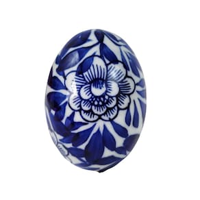 Ovo De Páscoa Decorativo 8X5Cm Porcelana Azul E Branca A