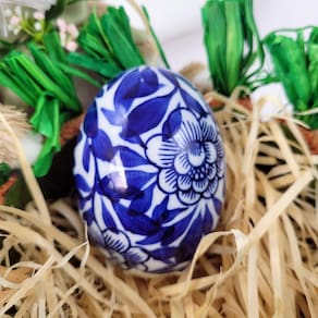 Transforme sua Páscoa com o Ovo de Páscoa Decorativo de Porcelana Azul e Branco Floral e adicione um toque clássico e encantador à sua decoração. Adquira o seu agora e faça desta Páscoa uma celebração ainda mais especial.