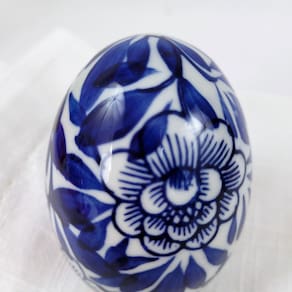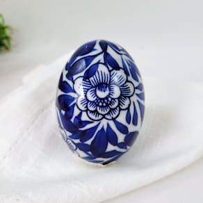 Transforme sua Páscoa com o Ovo de Páscoa Decorativo de Porcelana Azul e Branco Floral e adicione um toque clássico e encantador à sua decoração. Adquira o seu agora e faça desta Páscoa uma celebração ainda mais especial.