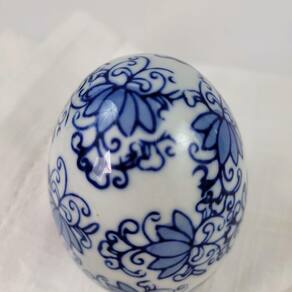 Ovo de Páscoa decorativo em porcelana Cores: Azul e branco com detalhes florais arabescos Material: Porcelana de alta qualidade para acabamento refinado Peso: 140g Design clássico e sofisticado, ideal para a Páscoa