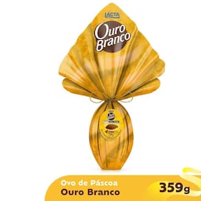 Ovo de Páscoa Lacta Ouro Branco Chocolate Branco 359g Ovo de Páscoa Ouro Branco 359g Se você está procurando um ovo de Páscoa saboroso e surpreendente, não precisa mais procurar. A Lacta acaba de lançar seu novo ovo de Páscoa de chocolate branco com recheio na casca sabor Ouro Branco. Com 359g, este ovo é perfeito para quem quer aproveitar a data com muito sabor e qualidade. A casca do ovo é feita com o delicioso chocolate branco que a Lacta é conhecida, e o recheio é inspirado no famoso doce Ouro Branco. Ou seja, é uma combinação perfeita entre dois sabores que todos amam. Além disso, este ovo ainda acompanha 2 doces Ouro Branco, para você compartilhar ou saborear sozinho.