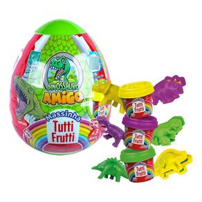 O ovo do Dinossauro Amigo veio para alegrar as atividades da criançada, Ele vem em uma divertida embalagem em formato de ovo de dinossauro e contém massinhas coloridas com aroma tutti frutti e moldes de dinossauros para a criança brincar e criar figuras. Ideal para estimular a criatividade, coordenação motora e imaginação das crianças, o brinquedo é indicado para maiores de 3 anos. Uma ótima opção para presentear a criançada que são fãs do dinossauro.