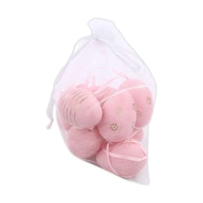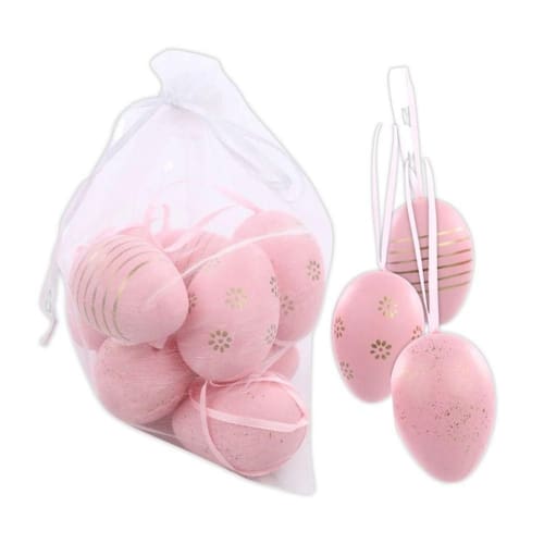 O Saco Ovos Páscoa Rosa Estampados da Cromus traz um toque especial para a decoração da sua Páscoa. Com 9 unidades de ovos penduráveis de 6cm, cada um decorado com delicadas estampas em rosa e detalhes em dourado, esse conjunto é ideal para trazer um charme único e elegante para o seu ambiente festivo.
