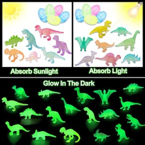 - Brinquedos de ovos surpresa que brilham no escuro: os ovos de Páscoa e os brinquedos de dinossauros são luminosos. Basta deixá-los absorver um pouco de luz ou luz solar por um período de tempo, eles brilharão no escuro. Isso os torna atraentes, interessantes e atraentes
