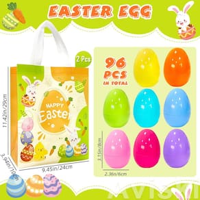- ?Material premium?Nossos ovos vazios de Páscoa para encher são feitos de material plástico premium, estes ovos de Páscoa são projetados para durar ano após ano, tornando-os um ótimo investimento para suas celebrações de Páscoa. A bolsa de páscoa é feita de tecido não tecido, reutilizável e prático.