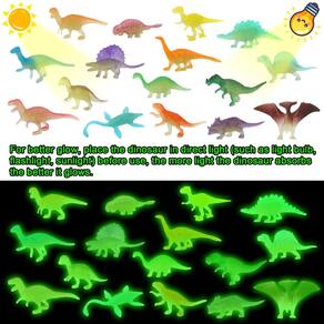 - Brinquedos de dinossauro que brilham no escuro: com luz suficiente, os bonecos de dinossauros brilharão no escuro com efeitos visuais deslumbrantes à noite, super atraentes para crianças, são ótimos como suprimentos de decoração de festa de aniversário de dinossauro.