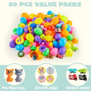 - Diversão infinita. Será perfeito como presente com esta embalagem requintada. Economize tempo e dinheiro dos pais na preparação de ovos de Páscoa para crianças. Muito conveniente e divertido para comprar um conjunto de ovos surpresa para seus adoráveis meninos e meninas.