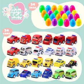 24 peças de mini carros da cidade com repuxão de ovos de Páscoa para crianças caça de ovos de Páscoa, enchimentos/enchimentos de cesta de Páscoa, lembrancinha de festa de Páscoa, suprimentos para prêmios de sala de aula