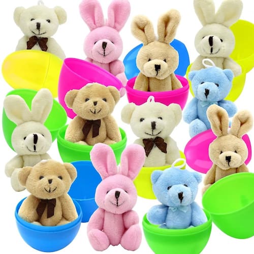 Pacote com 12 ovos de Páscoa pré-cheios com coelhinhos e ursos de pelúcia