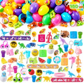 - Cada ovo é pré-preenchido com um brinquedo e um adesivo de Páscoa; 160 peças de ovos de Páscoa premium pré-cheios incluindo adesivo, primavera, carrinho de brinquedo de puxar para trás, divertido olho mexido, dinossauro, etc.