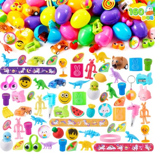 - Conjunto de 160 ovos de Páscoa mais valiosos e duráveis. Conjunto de 160 brinquedos de alta qualidade preenchidos com ovos de Páscoa de 6 cm de altura. Nem todos os brinquedos são mostrados na imagem do produto. Mais para descobrir nos ovos!