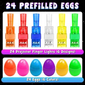 Pacote com 24 ovos de Páscoa pré-cheios com brinquedos, luz de projeção interna que brilha no escuro, lembrancinhas de cesta de Páscoa para crianças, meninos, meninas, ovos de Páscoa com brinquedos internos para caçar ovos de Páscoa, presentes de Páscoa, ovos de páscoa preenchidos Características: enchimentos exclusivos de ovos de páscoa com luz de projeção de dedo dentro de desenhos de Páscoa em imagens projetadas, criativo e interessante, divertido para brincar, ovos de páscoa versáteis de plástico pré-cheios de cesta de Páscoa suprimentos brinquedos de Páscoa para guloseimas sacos de presentes de Páscoa, prêmios de Páscoa - Ovos de Páscoa pré-cheios, vem com 24 ovos de Páscoa preenchidos com luzes de projeção de dedo (6 modelos). A luz de dedo de enchimento de ovos projeta um padrão de tema de Páscoa quando você pressiona o botão, recheios de cesta de Páscoa super legais para crianças e adolescentes - Designs com tema de Páscoa. Os padrões projetados são projetados em personagens de Páscoa, incluindo coelho, cesta de Páscoa, pintinho, ovelha, gnomo e caminhão de cenoura com um coelho. Todos os personagens ficam fofos, essenciais de cesta de Páscoa perfeitos para meninos e meninas - Ovos de Páscoa que brilham no escuro, estes brinquedos de Páscoa são feitos de plástico de alta qualidade, as luzes dos dedos são montadas com uma folha de isolamento para uma vida útil mais longa. Eles são fáceis de usar, basta remover a folha e pressionar o botão liga/desliga. Uma imagem nítida será projetada - Presentes de Páscoa para crianças. Os ovos de Páscoa de plástico pré-preenchidos com brinquedos podem ser embalados nas cestas de Páscoa ou escondidos nos quintais, um conjunto que brilha no escuro oferece diversão sem fim para a festa de caça aos ovos de Páscoa. As crianças vão se divertir muito se receberem estes adoráveis lembrancinhas de festa de Páscoa com luz de projeção de dedo - Petiscos de Páscoa sem doces, estes brinquedos de ovo de Páscoa são ótimos para recheios de cesta de páscoa para crianças, enchimentos de sacolas de brindes, prêmios de sala de aula de Páscoa, suprimentos de festa de Páscoa e presentes de Páscoa para crianças. Estrela sua festa divertida com estas luzes de dedo que brilham no escuro
