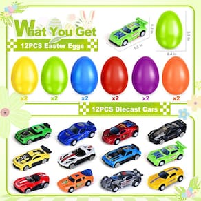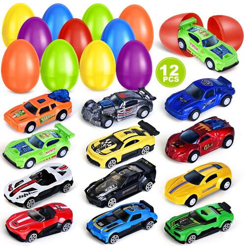 - ?Itens exclusivos de cesta de Páscoa?Estes conjuntos de ovos de Páscoa cheios de brinquedos de carro fundido são feitos de material de ótima qualidade. Tem aparência e sensação muito delicada e bonita, a melhor opção para enchimentos de cesta de Páscoa. As crianças vão adorar o evento de caça aos ovos de Páscoa e definitivamente ficarão surpresas ao comprar esses carros adoráveis. Trará diversão infinita para as crianças.