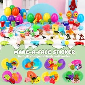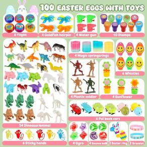 - 100 ovos de Páscoa com brinquedos dentro, ovos de plástico surpresa de 6 cm em cores diferentes com diferentes tipos de pequenos brinquedos. As crianças ficarão encantadas ao descobrir a surpresa em cada ovo de Páscoa que caçam! É um ótimo presente para todos os meninos e meninas