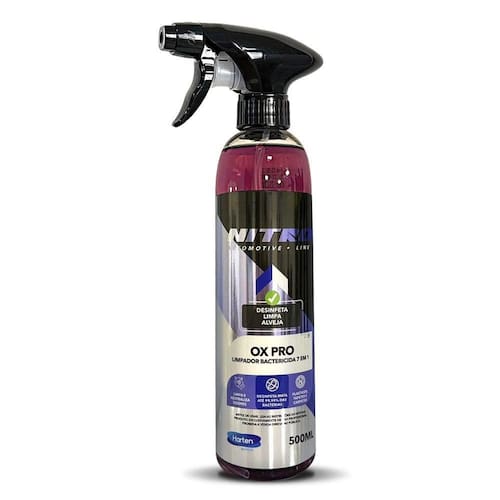 O Ox Pro Limpeza Interna Nitro 500ml é um limpador flotador bactericida e ultra concentrado, desenvolvido para a higienização completa do interior de veículos. Sua 7 em 1 é projetada para remover sujeiras difíceis, manchas de gordura e eliminar odores, além de possuir ação bactericida.