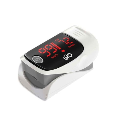 Oxímetro de pulso portátil adulto, não invasivo inovador com detecção da saturação de oxigênio (SpO2%) e frequência cardíaca (BPM), leve, compacto e de fácil operação, contém visor de LED na cor vermelha, alta precisão e durabilidade com indicador de carga da pilha, função de desligamento automático (após 8 segundos sem uso) para economia de energia.