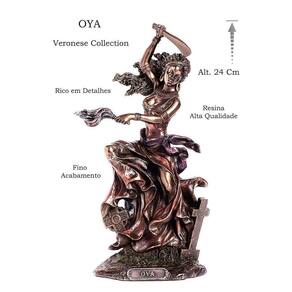 Oya iansã orixa deusa ventos raios tempestades veronese Embalagem: 1 estatua oya iansã orixa deusa das tempestades veronese 24 cm tamanho Altura: 24 cmLargura: 10 cmProfundidade: 8,5 cmMaterial: resinaCor: bronze dourado com detalhes em cores Marca: veronese collection Design by veronese A marca veronese design , representa o que há de melhor na produção de peças em resina , seja na arte de esculura, quanto em suas pinturas. Suas peças apresentam uma enorme riqueza de detalhes , nada se compara aos seus produtos. Foi introduzida no mercado em 1996 e tornou-se sinônimo de alta qualidade e valor excepcional nas indústrias internacionais de presentes e colecionáveis. Os projetos e produtos ganharam muitas aclamações em toda a europa, américa e ásia. Situada na califórnia , tem como objetivo distribuir seus produtos nas américas e facilitar uma interação mais direta e um melhor serviço no mercado, com foco em designs de produtos novos e estabelecidos. Esta escultura, é primorosa, rica em detalhes e acabamento impecável, confeccionado em resina, material de alta resistência e durabilidade, uma obra de arte, apreciada no mundo todo. Orixa oya iansã deusa dos ventos raios e tempestades Ayliv As fotografias forma produzidas nos studios ayliv. Todos os direitos reservados. Marca: Veronese Collection