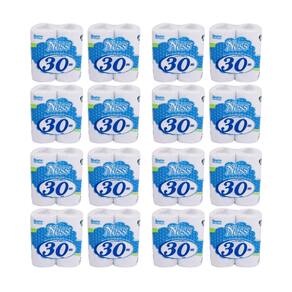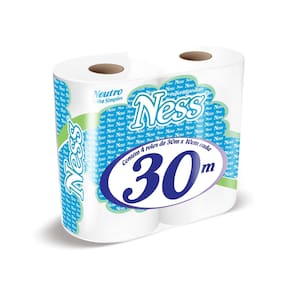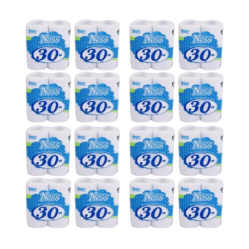 1 Fardo de Papel Higiênico Ness contendo 16 rolos de 30 metros cada.