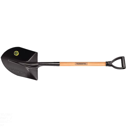 Quem trabalha em reformas e construções sabe a importância de ter as ferramentas certas para desenvolver com sucesso seu trabalho, não é mesmo? Por isso, a pá de bico Tramontina 460/30 em aço com cabo de madeira 71 cm com empunhadura plástica curva ergonômica é a escolha ideal! Com corpo produzido em aço carbono, a peça proporcionará mais durabilidade e resistência, lhe ajudando por muito mais tempo. Além disso, seu cabo em madeira conta com empunhadura feita em plástico, característica que oferece mais conforto no manuseio. Orientações - A pá é fabricada em aço carbono especial de alta qualidade, cortada a laser.- É temperada em todo o corpo da peça, proporcionando maior resistência e menor desgaste durante o uso.- Recebe pintura eletrostática a pó, que tem uma melhor apresentação visual e maior proteção contra oxidação.- A tinta utilizada na pintura é isenta de metais pesados na sua composição, o que minimiza o impacto ambiental.- O cabo de 71 cm desta ferramenta, além de possuir ótima resistência, é produzido com madeira de origem renovável.- Cabo com acabamento envernizado, para um melhor acabamento e apresentação do produto. A camada protetora em verniz incolor realça sua tonalidade, concedendo brilho e um toque mais liso ao produto.- Possui empunhadura plástica ergonômica.- Pá leve, que gera menos esforço físico do usuário e proporciona maior produtividade. Características Gerais EAN13 7891117021650 DUN14 17891117021657 NCM 8201.10.00 Peso Líquido 1,3300 kg. Peso Bruto 1,3300 kg. Metragem 0,006667 m³. Dimensões Embalagem (Compr. X Larg. X Alt.) 1.003x 270x 161 mm. Dimensões Produto (Compr. X Larg. X Alt.) 1.025x 269x 161 mm. Cor 1 000000 Hexa Observações - A pá é utilizada na agricultura, jardinagem e construção civil, para juntar ou carregar materiais diversos.- Para descarte dos produtos e embalagens siga as orientações de reciclagem vigentes.