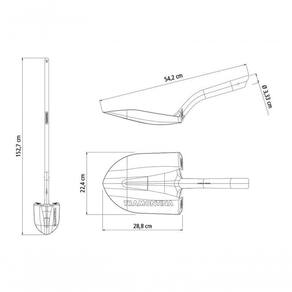 - A pá é fabricada em aço carbono especial de alta qualidade, cortada a laser;