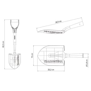 - A pá é fabricada em aço carbono especial de alta qualidade, cortada a laser.