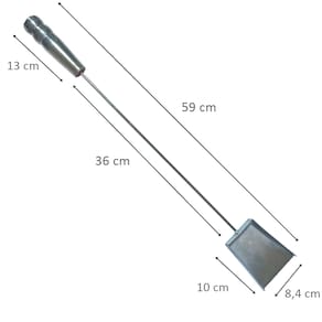 Material do rastelo: Aço Medida do prolongador: 36 cm Comprimento da pá: 10 cm Largura da pá: 8,5 cm Medida total: 59 cm