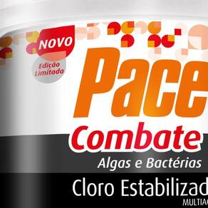 Indicado para piscinas residenciais.Composição:trocloseno de sódio: 50 - 70%Cloreto de sódio: 30 - 50%Sulfato de cobre pentahidratado: 0,25 - 1%Instruções de Uso:1 Avalie os parâmetros da água da piscina e ajuste-os, se necessário.Primeiro a alcalinidade entre 80 e 120 ppm e depois o pH entre 7,0 e 7,4.2 Com o sistema de filtração em funcionamento, na posição Filtrar,aplique 4 gramas do Pace Combate para cada 1000 litros 1m de água, espalhando o produto diretamente na piscina, ao longo das laterais, dia sim, dia não, sendo, de preferência, à noite.3 Dependendo da frequência de uso da piscina, da intensidade do sol e das chuvas, a dosagem deverá ser ajustada.4 Em caso de água turva, odores desagradáveis ou irritação nos olhos, ajuste a alcalinidade e o pH para as faixas ideais e, posteriormente, faça uma supercloração com 14g do Pace Combate para cada 1000 litros 1m de água.5 Meça o teor de cloro livre na manhã seguinte. Somente permita a entrada da pessoa na piscina quando o residual deste estiver na faixa de 1 a 3 ppm.6 Filtre a água diariamente, por um período mínimo de 6 horas. Dúvidas Frequentes:- Qual o percentual de cloro ativo na fórmulaR: Aprox. 30% de cloro ativo.- Ele vem com o dosadorR: Sim, acompanha dosador.- Qual a diferença entre o cloro aditivado e o não aditivadoR: O cloro não aditivado é mais concentrado, porém possui somente cloro na fórmula.Esse modelo aditivado possui outras substâncias na fórmula entretanto possui um teor menor de cloro ativo.- A água tratada com este produto serve para beber e cozinharR: Não, somente para o banho, não pode ser Utilizado para consumo.- Controla o PH da águaR: Este cloro não tem este agente que trabalha na regulagem do Ph da água.