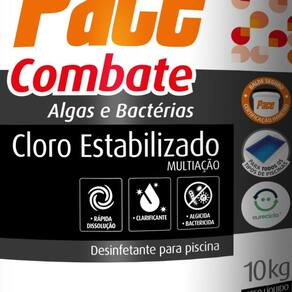 Indicado para piscinas residenciais.Composição:trocloseno de sódio: 50 - 70%Cloreto de sódio: 30 - 50%Sulfato de cobre pentahidratado: 0,25 - 1%Instruções de Uso:1 Avalie os parâmetros da água da piscina e ajuste-os, se necessário.Primeiro a alcalinidade entre 80 e 120 ppm e depois o pH entre 7,0 e 7,4.2 Com o sistema de filtração em funcionamento, na posição Filtrar,aplique 4 gramas do Pace Combate para cada 1000 litros 1m de água, espalhando o produto diretamente na piscina, ao longo das laterais, dia sim, dia não, sendo, de preferência, à noite.3 Dependendo da frequência de uso da piscina, da intensidade do sol e das chuvas, a dosagem deverá ser ajustada.4 Em caso de água turva, odores desagradáveis ou irritação nos olhos, ajuste a alcalinidade e o pH para as faixas ideais e, posteriormente, faça uma supercloração com 14g do Pace Combate para cada 1000 litros 1m de água.5 Meça o teor de cloro livre na manhã seguinte. Somente permita a entrada da pessoa na piscina quando o residual deste estiver na faixa de 1 a 3 ppm.6 Filtre a água diariamente, por um período mínimo de 6 horas. Dúvidas Frequentes:- Qual o percentual de cloro ativo na fórmulaR: Aprox. 30% de cloro ativo.- Ele vem com o dosadorR: Sim, acompanha dosador.- Qual a diferença entre o cloro aditivado e o não aditivadoR: O cloro não aditivado é mais concentrado, porém possui somente cloro na fórmula.Esse modelo aditivado possui outras substâncias na fórmula entretanto possui um teor menor de cloro ativo.- A água tratada com este produto serve para beber e cozinharR: Não, somente para o banho, não pode ser Utilizado para consumo.- Controla o PH da águaR: Este cloro não tem este agente que trabalha na regulagem do Ph da água.