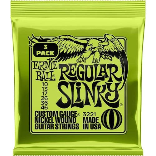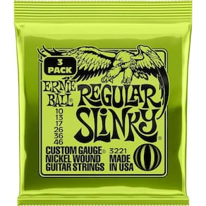 As cordas Ernie Ball Slinky Electric Strings são usadas por Jimmy Page, Jeff Beck e Angus Young. Estas cordas são produzidas com alta precisão para atingir os mais altos patamares e exatas especificações para garantir uma excelente performance e longa durabilidade.As cordas mais vendidas nos EUA, as cordas Slinky são feitas de puro níquel enroladas por computador em fio de puro aço (.010/.046).As cordas Ernie Ball Regular Slinky são o set mais vendido de cordas, e o encordoamento favorito de muitos músicos ao redor de mundo.As cordas Regular Slinky são tocadas por Eric Clapton, John Mayer, Steve Vai e outras legiões de guitarristas pelo mundo todo.As cordas Regular Slinky são feitas de fio de aço niquelado, encapado por um fio de puro aço moldado.As cordas planas são feitas em latão especialmente temperado chapado em aço carbonizado, produzindo um timbre bem balançeado para sua guitarra.Conteudo da embalagem3sets Encordoamento Ernie Ball 10/046