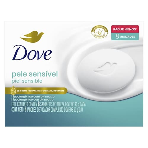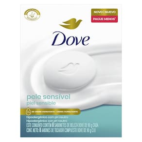 O sabonete em barra Dove Pele Sensível proporciona limpeza eficaz sem ressecar a pele, sendo indicado para pessoas com pele sensível. Com fragrância suave e pH neutro, ele é adequado para o rosto, possui 0% de sulfatos, parabenos e alergênicos, sendo tão suave quanto a água, além de ser hipoalergênico, reduzindo o risco de irritações.
