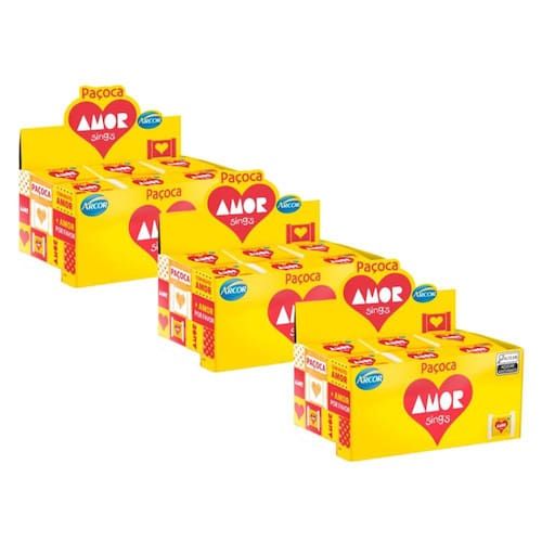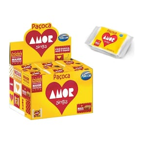 Caixa Paçoca Amor Sing´s caixa com 30 unidades de 18gr - Arcor - 540gr A clássica paçoca amor mais de 60 anos no mercado e é a queridinha do brasileiro. A Paçoca Amor já mora no coração dos brasileiros há mais de 60 anos e continua deliciosa, atual e sempre desejada pela sua qualidade, textura e sabor que até hoje ninguém conseguiu fazer igual. No tamanho ideal para lembrancinhas, festinhas ou para se deliciar! Paçoca Amor Arcor, como não amar! Tradicional e delicioso doce à base de amendoim de sabor inconfundível. Irresistível, doce na medida certa, é uma delícia a qualquer hora., ainda mais para os apaixonados. Contém: 01 caixa com 30 unidades de 18gr, da Paçoca Amor Sing's