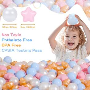 Heopeis – Quem somos? Nossa missão aqui na Heopeisis é fornecer às crianças e seus incríveis pais brinquedos inteligentes, divertidos e educativos que não apenas proporcionarão horas de diversão, mas também desafiarão as habilidades mentais e físicas de cada menino e menina. Trabalhamos duro para garantir que todos os nossos brinquedos atendam aos mais altos padrões. Testamos todos os brinquedos internamente e projetamos brinquedos que são feitos para durar para que as crianças possam brincar o dia todo, todos os dias. Especificações das bolas: 6,5 cm - o lado mais longo em diâmetro Peso: 3,4 g de 1 bola Material: 100% plástico Cor: Branco pérola/azul claro/ouro/rosa claro A embalagem inclui: 1 pacote x 100 bolas estrelas. 1 bolsa de rede. Bolas Heopeis Pit, projetadas para dar mais felicidade à sua família. Lembre-se sempre: queremos apenas o que é melhor para o seu filho. - ?Segurança: Pacote de 100 bolas (50 estrelas, 50 bolas), livre de ftalatos e BPA, feito de material não tóxico, plástico não reciclado e não PVC, livre de BPA, livre de ftalatos e sem grafite. - ?Tamanho e quantidade: 2,55 polegadas (6,5 cm) - o lado mais longo em diâmetro da estrela, a bola tem 5,5 cm. É o tamanho perfeito para crianças, evitando asfixia por engolir acidentalmente. - ?Bolas infantis coloridas: vem com 4 cores (bolas brancas/azul-claro e estrelas douradas/rosa claro), perfeitas para reconhecimento de cor e forma das crianças. - ? Brinquedos perfeitos: as crianças podem praticar agarrar, segurar, beliscar, jogar e até mesmo atirar em uma cesta na piscina. Use a imaginação para moldar diferentes padrões e letras. - ?FÁCIL DE ARMAZENAR: Com uma bolsa resistente, é fácil de armazenar e fácil de transportar e limpar. Oferecemos serviço pós-venda perfeito. Se você não estiver satisfeito com sua compra, a qualquer momento para resolvê-la.