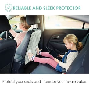 - 🚘 Feito de couro sintético premium: este protetor de assento é feito para durar. As várias camadas de materiais premium combinadas se tornam uma barreira excepcional entre a parte de trás de seus assentos e qualquer tipo de sujeira ou dano causado pelos pezinhos ocupados de seus filhos.