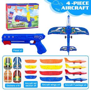Brinquedos de avião 2 em 1 - Nosso brinquedo planador é equo com 4 cores diferentes de aviões de espuma planadora amarelo, verde, laranja e azul e 1 lançador de aviões. Ao lançar aviões manualmente ou pilotá-los com o lançador, as crianças podem cultivar sua coordenação olho-mão, observação e senso de direção