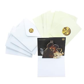 Oito cartas colecionáveis e envelopes. Cada cartão apresenta um design pop-up colorida.