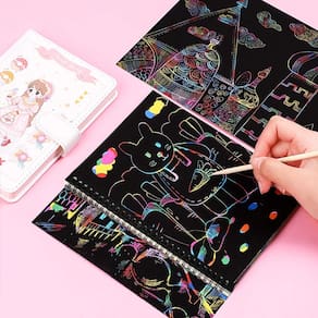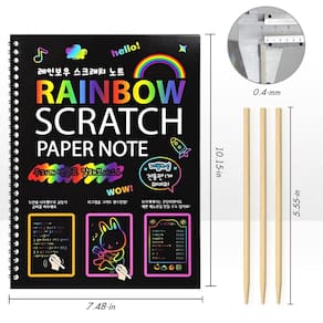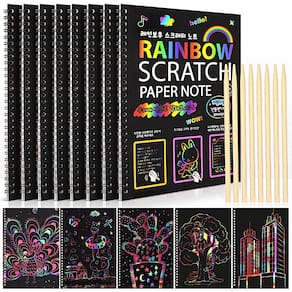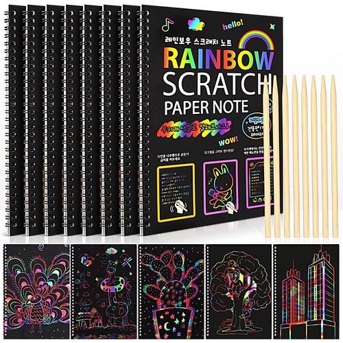 livros scratch arts - O pacote inclui: este kit de arte de raspar inclui 8 cadernos de arte de raspar e 8 canetas de madeira. O tamanho do caderno Scratch é de 19 x 25,8 cm, a caneta Stylus de madeira de 14 cm de comprimento. - Materiais de arte para crianças: os papéis de arranhar arco-íris são ótimos para as crianças criarem diferentes ilustrações artísticas, notas, cartões, esboços e rabiscos, liberando a criatividade das crianças e aprimorando suas habilidades motoras finas e liberando seu pensamento artístico. - Material seguro: sem sabor estranho, sem pó tóxico! Nossas notas de arte para raspar são feitas de materiais de alta qualidade, cada papel com uma divertida camada de cor holográfica de arco-íris escondida sob o revestimento preto fosco. - Vários propósitos — Materiais de arte infantis ideais para atividades em sala de aula, festivais, aulas de arte, recompensas de classe. As crianças vão adorar este caderno de arte surpreendido. - Serviço caloroso —— forneceremos um atendimento ao cliente caloroso se você tiver alguma dúvida sobre o produto, informe-nos sem hesitação.