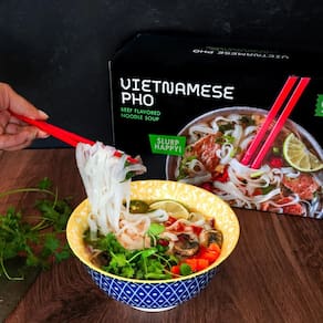 - Pho vietnamita em uma tigela conveniente: o pho clássico encontra a preparação fácil nesta tigela pronta para sorver. Caldo aromático, macarrão de arroz macio e especiarias quentes — basta adicionar água quente ou micro-ondas.
