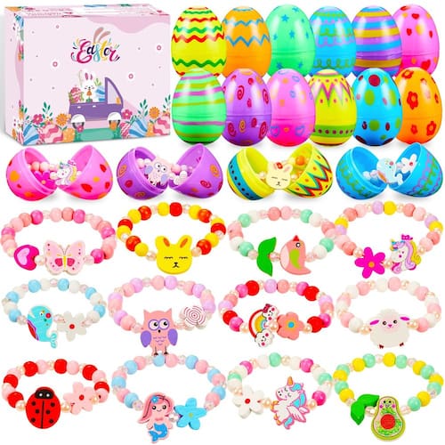 - Ovos de Páscoa pré-preenchidos sem doces para meninas – Uma surpresa de Páscoa encantadora! Vá além das guloseimas tradicionais nesta Páscoa com nossos ovos de Páscoa cheios vibrantes com pulseira diversa! Cada ovo de páscoa cheio de plástico é embalado com uma divertida pulseira de madeira em vez de doces, oferecendo uma surpresa duradoura e criativa. Presentes de Páscoa perfeitos para meninas que amam brincadeiras brilhantes e imaginativas!