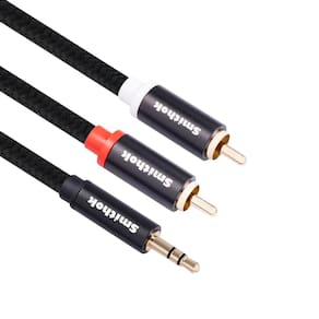 Pacote de 2 cabos Smithok de 3,5 mm para RCA 1 m de nylon trançado preto