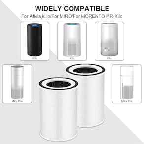 Pacote com 2 filtros HEPA KILO verdadeiros para Afloia KILO, compatível com Afloia KILO, KILOPLUS, KILOPRO, MIRO, MIRO PRO e MORENTO KILO, filtragem verdadeira de 360° em 3 estágios para substituição do filtro de purificador de ar afloia - ?Serve para?A substituição do filtro para Afloia é totalmente compatível com Afloia, KILO, Morento, KILO PRO/MIRO e MIRO PRO. (Aplicável a estes asin: B08PCXJVFH/B0948XR4DC/B09P8KBW5V/B08YT4TNJD/B088FJ8YBJ/B096RQBXJP) Observação: não serve para Fillo/Allo/Halo, MAX/MAGE/MAGE PRO. Certifique-se de verificar o tamanho do filtro e a marca e o modelo da sua máquina antes de fazer uma compra - ?Filtração em 3 estágios?Nosso filtro de substituição para KILO é projetado em filtro verdadeiro, carvão ativado de alta eficiência e pré-filtro fino que trabalham juntos para reduzir partículas transportadas pelo ar e odores indesejados em seu espaço de vida para melhorar a qualidade do ar, ideal para donos de animais de estimação, fumantes e pessoas que vivem nas cidades. O filtro verdadeiro pode filtrar efetivamente até 99,97% das partículas tão pequenas quanto 0,3 mícron - ?Pacote econômico?: O pacote inclui 2 pacotes de substituição de filtro KILO. Mede 16,5 cm x 16,5 cm x 21,8 cm. O kit de substituição do filtro de ar contém todos os componentes necessários para a instalação padrão compatível com Afloia KILO/KILO PRO/MIRO/MIRO PRO e MORENTO KILO. Tamanho perfeito para caber e econômico, sem necessidade de outras preocupações! - ?Fácil de instalar?O filtro KILO/KILO PRO é fácil de ser substituído e descartado sem necessidade de qualquer ferramenta, garantindo que você substitua seu filtro antigo em minutos. Para um desempenho ideal, recomenda-se substituir o filtro a cada 3-6 meses, dependendo do uso. (A vida útil do filtro KILO é geralmente de 2200 horas, dependendo do seu uso e ambiente) - ?Compre com confiança?A Lichelete está comprometida em fornecer a todos os clientes filtros purificadores de ar de alta qualidade e econômicos e ajudar os clientes a construir um ambiente de vida melhor. Se você tiver alguma dúvida sobre nossos filtros de substituição KILO MIRO, sinta-se à vontade para entrar em contato com a equipe de atendimento ao cliente da Lichelete e responderemos dentro de 12 horas com uma solução para sua satisfação, sempre com a experiência do cliente como nossa principal prioridade, você pode comprar com confiança.
