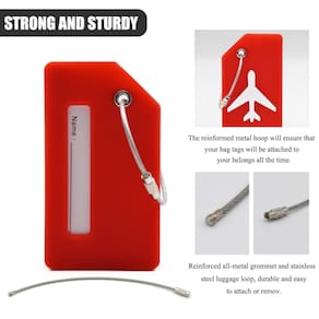 Economize tempo na reclamação de bagagem – Pacote com 7 etiquetas de bagagem para atender a todas as suas necessidades Etiquetas de bagagem coloridas brilhantes, dão personalidade à sua bolsa e fácil de identificar no carrossel de bagagem, ajudam você a escolher sua bagagem facilmente e ajudam a dar um pouco de personalidade à sua própria experiência de viagem. Tamanho das etiquetas: 3,6 x 2 x 0,6 cm Material: silicone/aço inoxidável Cor: verde/vermelho/amarelo/roxo/laranja/azul/preto Pacote: 7 x etiqueta de mala Cada etiqueta inclui: Estojo de etiquetas de bagagem de silicone + corda de aço inoxidável + papel em branco + capa de PVC frontal do papel. Bateria para durar: Feito de silicone resistente e dobrável, que sobreviverá a todos os choques e quedas causados pelos funcionários do aeroporto sempre descuidados. Fácil de transportar: tamanho pequeno e leve, conveniente para transportar, muito adequado para viagens. Segurança e uso amplamente: as etiquetas de nome podem ser usadas para malas, bolsas, carros infantis, malas de viagem e assim por diante. Torna a viagem mais fácil, segura e segura. Você pode escrever seu nome e endereço no cartão de identificação, para facilitar a identificação de sua bagagem de outras pessoas. Basta escrever suas informações diretamente no cartão usando uma caneta esferográfica. Nossa capa de meia parte esconderá completamente suas informações de olhares curiosos. - ?Flexível e durável?Nossas etiquetas de bagagem feitas de silicone durável de qualidade para dobrar sem quebrar. A argola de metal reinformada garantirá que as etiquetas da sua bolsa sejam presas aos seus pertences o tempo todo. - ?Proteção de privacidade?Com apenas seu nome visual para outros estranhos ao seu redor, suas informações pessoais vitais, como número de telefone e endereço, estarão bem protegidas contra seguidores maliciosos. - ?Elegante e prático?Tamanho das etiquetas: 9 cm x 5 cm x 0,6 cm, tamanho pequeno e leve, conveniente para transportar, muito adequado para viagens, além disso, também pode ser anexado à sua bagagem como uma decoração fofa. - ?Encontre sua bagagem com facilidade?Nossas etiquetas de bagagem têm cores vibrantes (também disponíveis em preto) o que facilita identificar seus pertences no aeroporto, ônibus ou distância. Cartão - ?Pacote com 7 etiquetas de bagagem para atender a todas as suas necessidades? Com estas 7 etiquetas de nome, você pode etiquetar todas as suas bagagens, malas, bolsas, mochilas escolares e qualquer outra coisa que precise ser etiquetada. Quantidade suficiente para o seu uso e compartilhe-os com seus familiares e amigos.